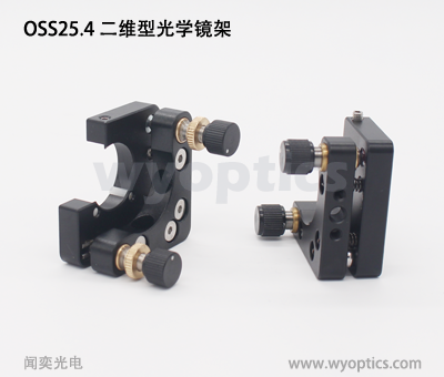 闻奕光电生产的 25.4mm 光学镜架可以安装25.4mm和25mm直径的镜片。其中OS-25.4为基本型;OSS-25.4为二维型,可以微调角度;均可以安装在光学支杆上。