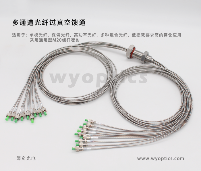 其兼容闻奕光电生产的真空多模光纤跳线,使得用户可以通过光纤线缆将光从外部环境耦合到一个真空腔室中在真空环境中使用光纤跳线时,请确保线缆兼容真空(建议搭配闻奕光电真空光纤)。