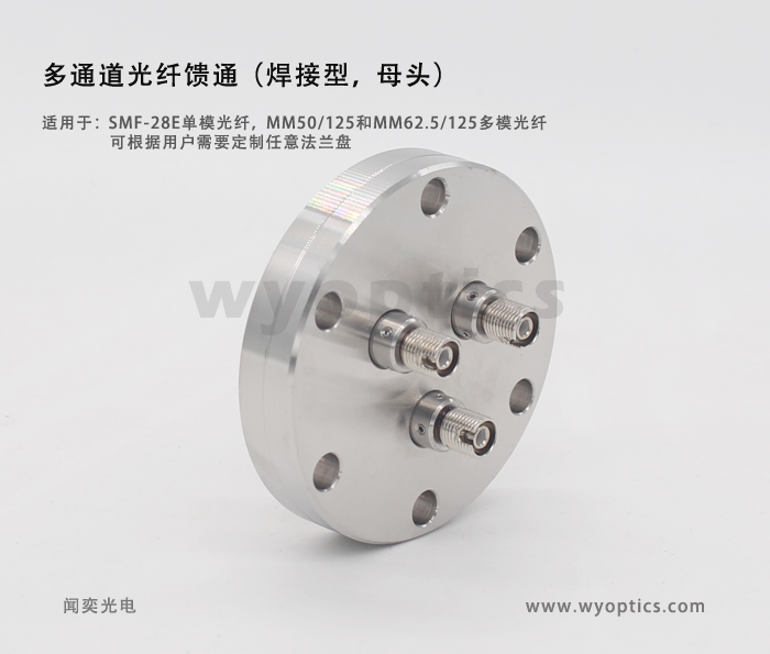 其兼容闻奕光电生产的真空多模光纤跳线,使得用户可以通过光纤线缆将光从外部环境耦合到一个真空腔室中在真空环境中使用光纤跳线时,请确保线缆兼容真空(建议搭配闻奕光电真空光纤)。