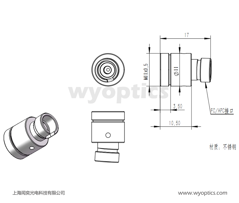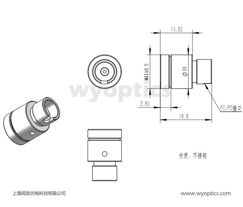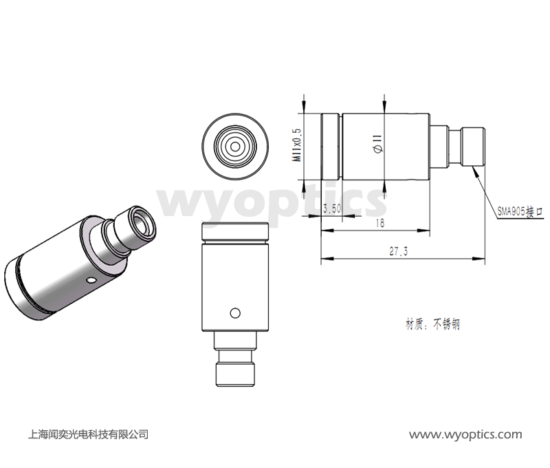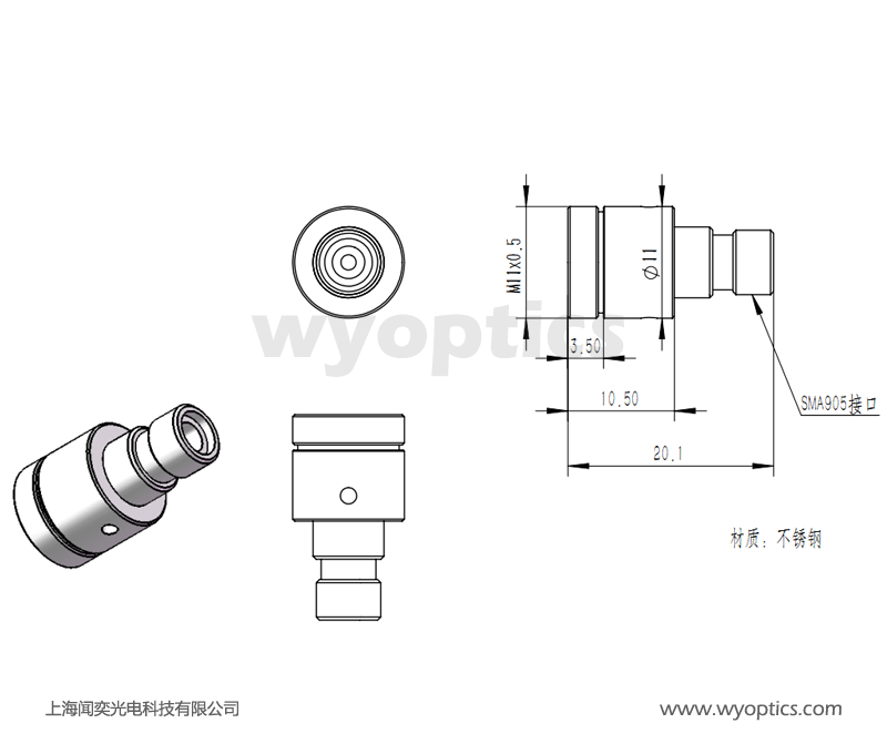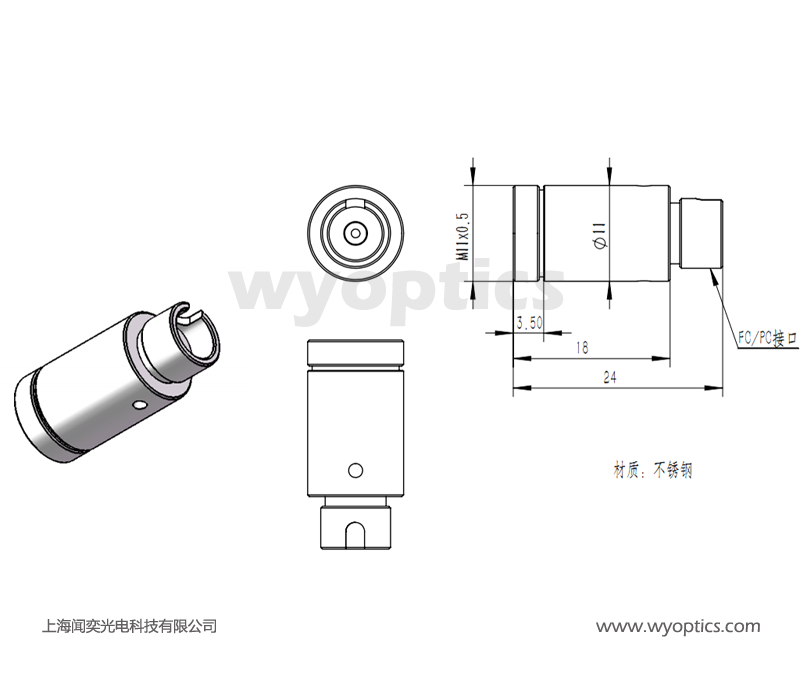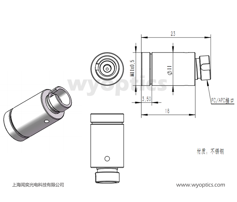 上海闻奕光电科技有限公司生产的COL6 光纤准直器有FC/PC、FC/APC和SMA905 接口,镜片直径为6mm;可以用于单模或者多模光纤跳线,对准波长从380 nm到1750 nm,根据波长不同,每个准直器都经过出厂对准,简化光纤耦合探测系统,采用无磁不锈钢外壳。